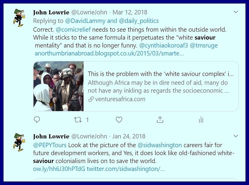 The "White Saviour Mentality" afflicts Foreign Aid and is deeply embedded including with rich philanthro[ists.
